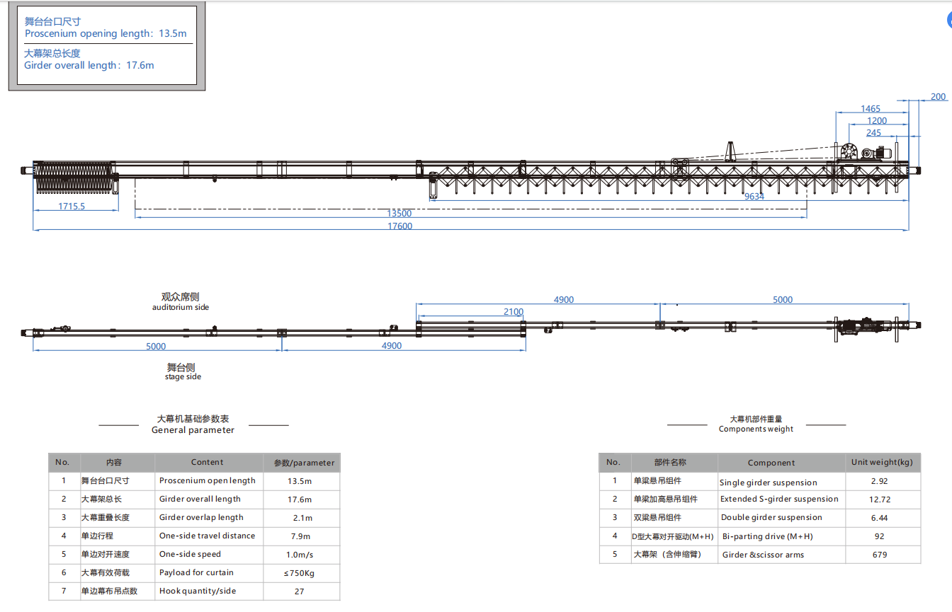 大幕机选型图 13.5m/17.6m